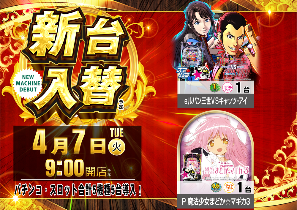 4月7日(火)新台入替のご案内です