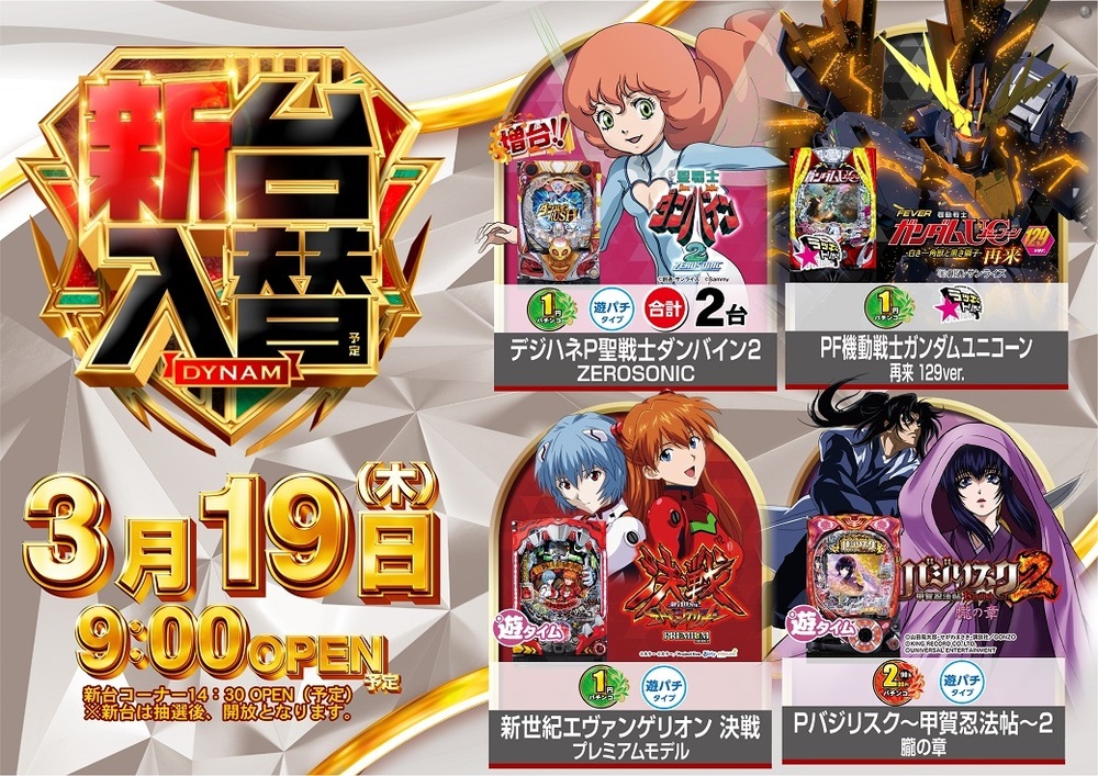 ◇━◆◇━◆◇━◆◇━◆◇━◆◇━◆ 3月19日(木)◆◇━◆ ↓↓ 導入機種はこちら ↓↓