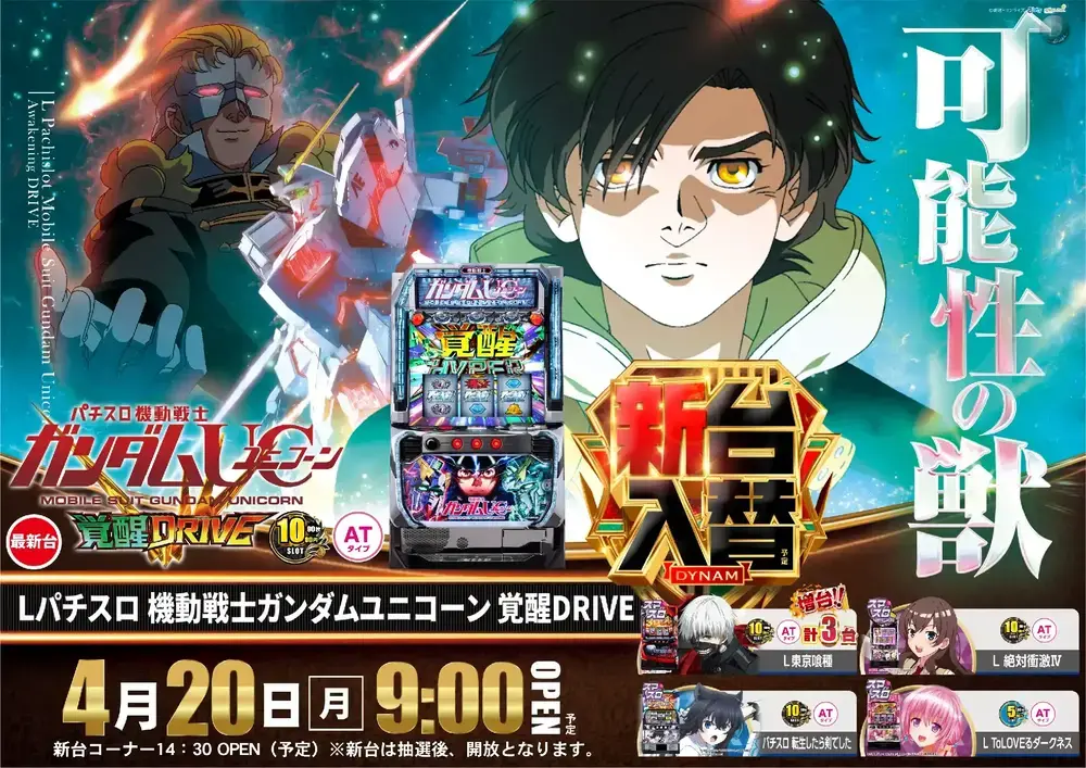 【1000円90枚スロット】 Lパチスロ 機動戦士ガンダムユニコーン 覚醒DRIVE (ATタイプ) L東京喰種 (ATタイプ) L 絶対衝激Ⅳ (ATタイプ) パチスロ 転生したら剣でした (ATタイプ)