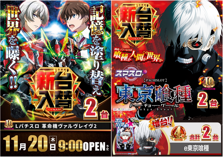 11月20日【木】の新台入替では、 全レート3機種5台導入です