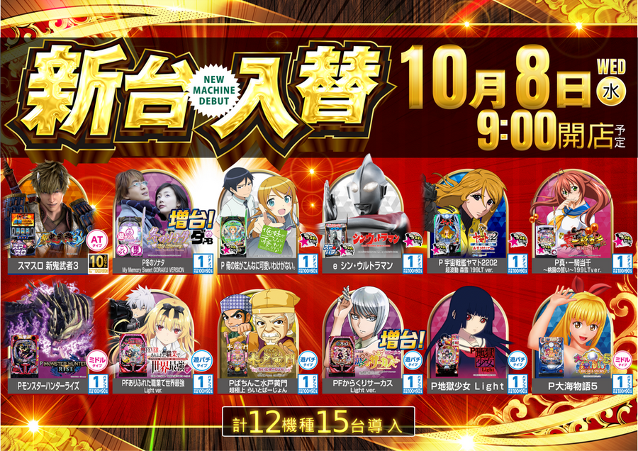 入替当日は朝9:00 OPEN(予定)となります。 8:45から正面入り口にて入場抽選を行いますので 是非あさからご来店ください