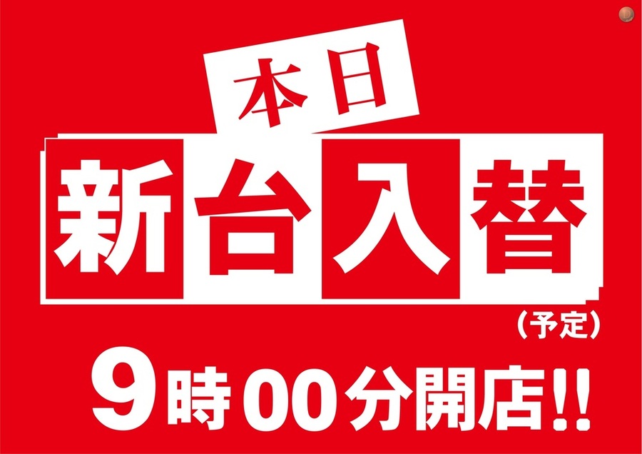 本日、朝9:00 OPENとなります。 8:45から正面入り口にて入場抽選を行いますので 是非あさからご来店ください