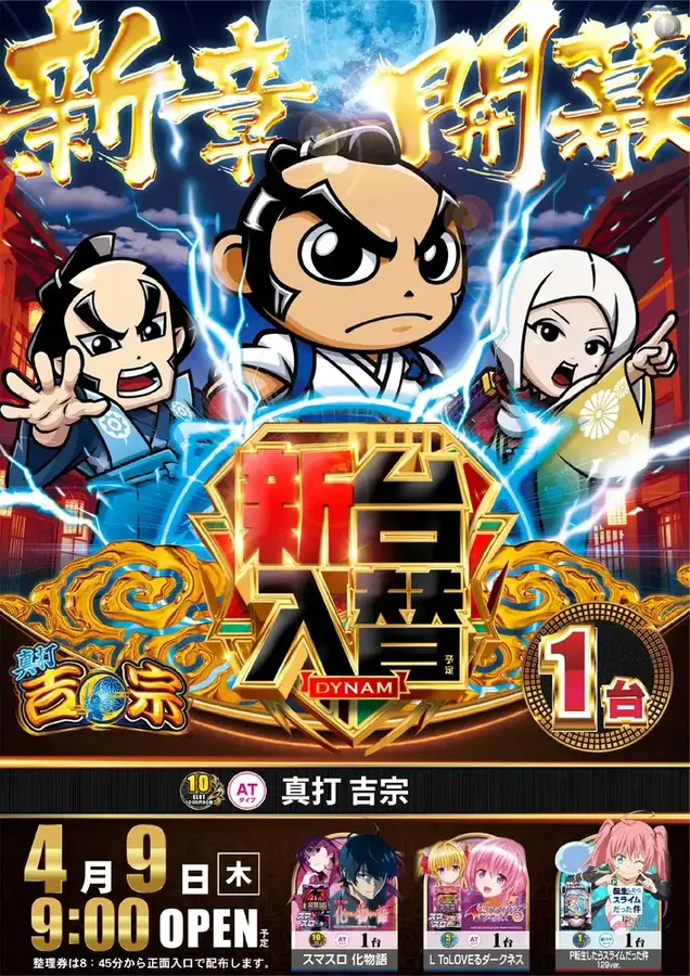 ★10スロット1000円90枚に1台導入★ 真打 吉宗 スマスロ 化物語 L ToLOVEるダークネス P転生したらスライムだった件129ver.