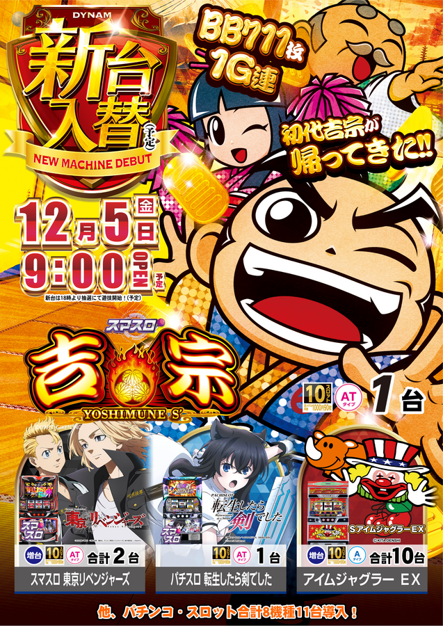 12 月 5 日【金】 新台入替(予定)