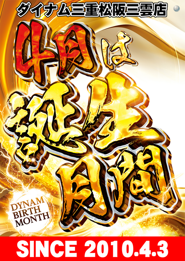 ダイナム三雲店は4月3日をもちまして誕生16周年を迎えます