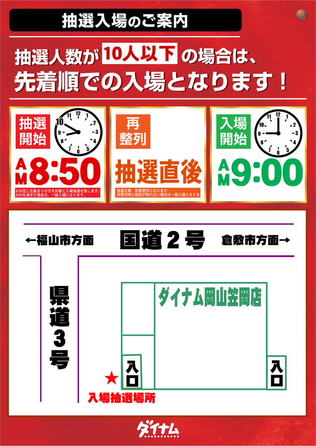 ■9時開店 ⇒ 抽選時間 8:45(予定)