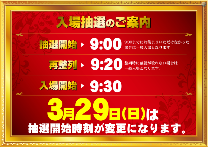入場抽選は9:00~となります![]()
