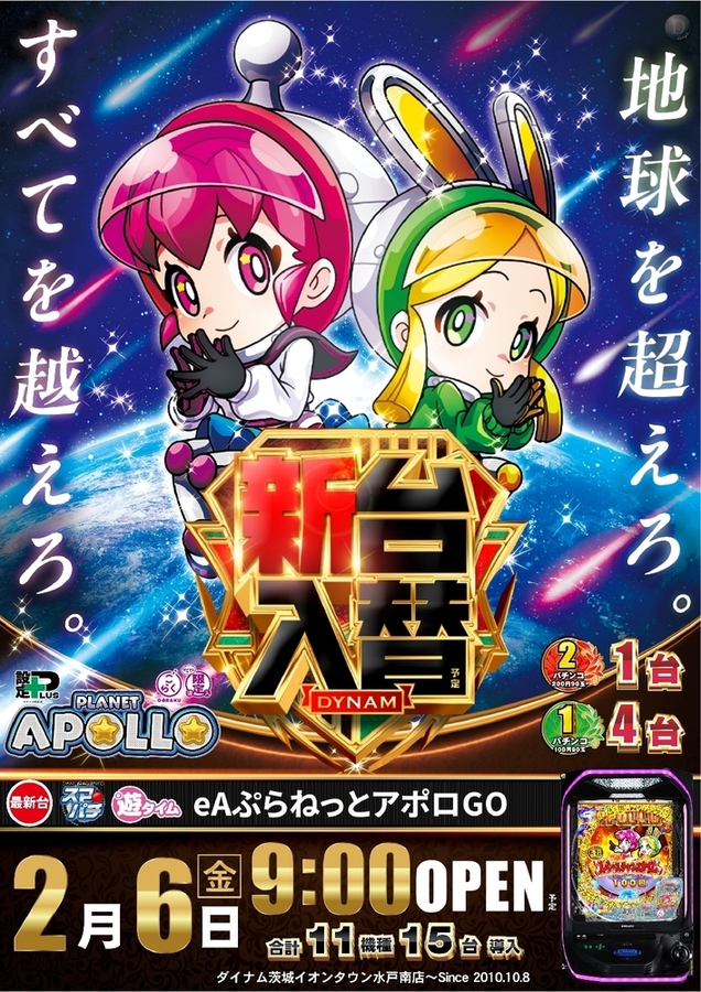 eAぷらねっとアポロGO ※こちらの機種は2パチンコにも導入します。