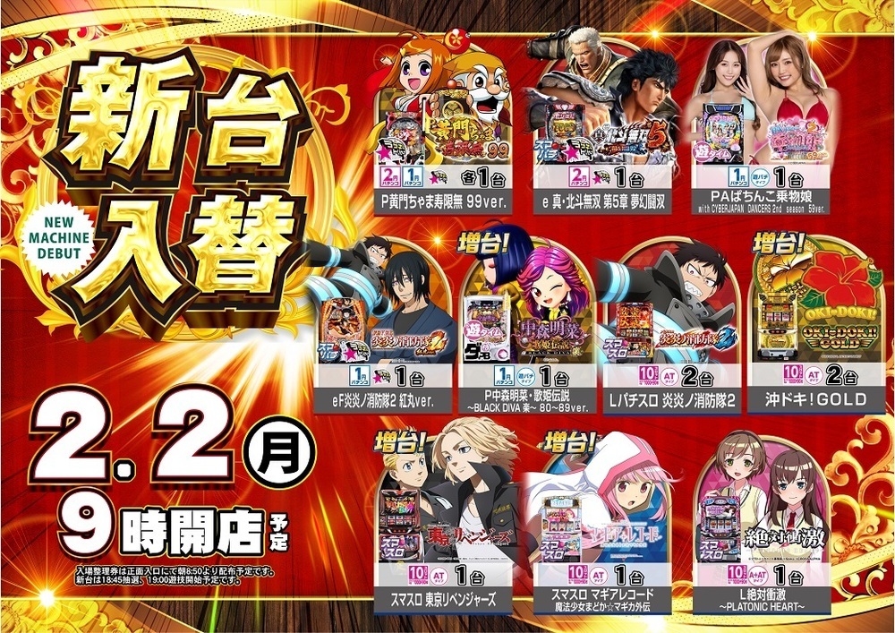 2月2日(月)新台入替(予定)![]()