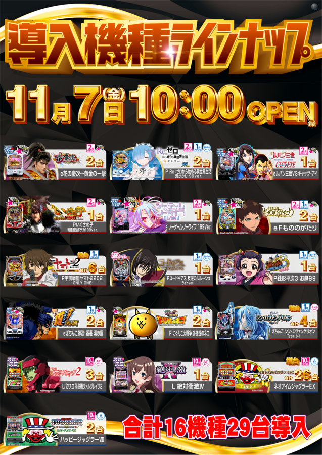 全16機種29台の新台入替予定!