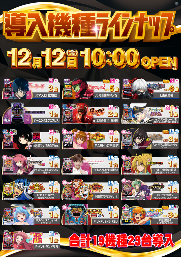 ・10円スロットへ最新台導入!!! & 人気機種増台!!!