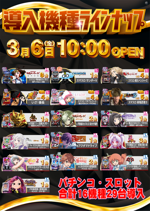 ①3/6(金)はリニューアルオープン&新台入替予定!
