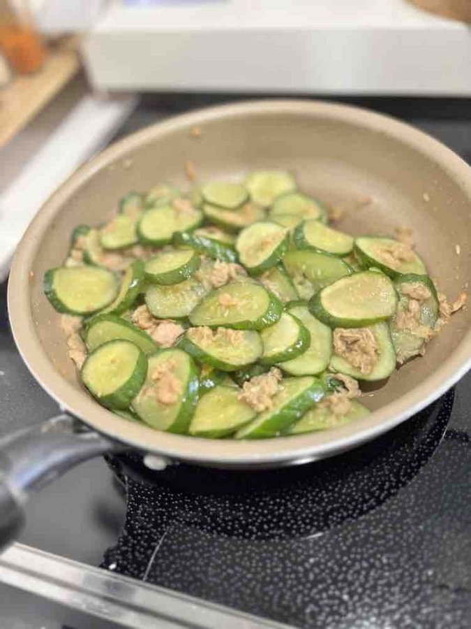 きゅうりを切ってシーチキンと炒めるだけの簡単なやつなのですが