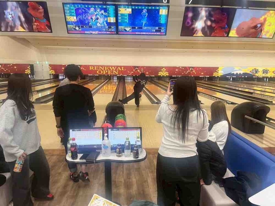 飲んだ後はそのノリのままボウリングへ!