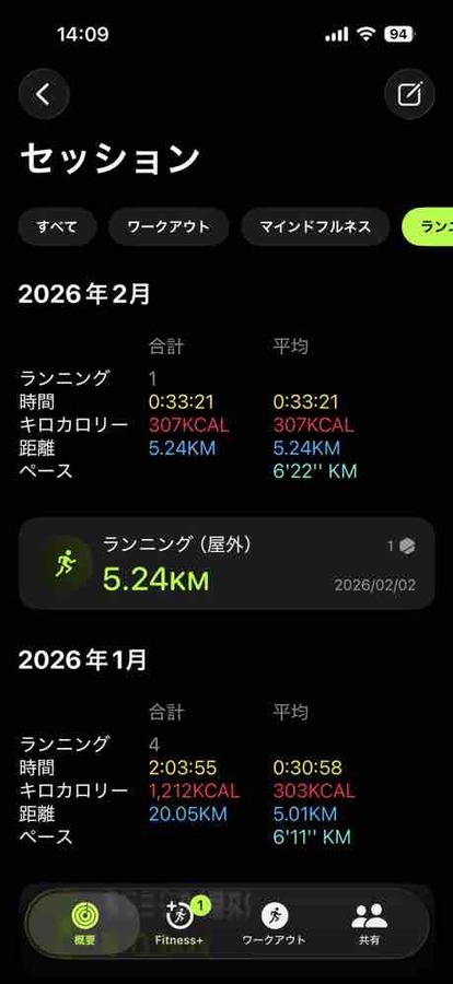 ⑦ランニング(5.24km:5㎞~5.5㎞×1回:前月比-3回/-14.8㎞)![]()