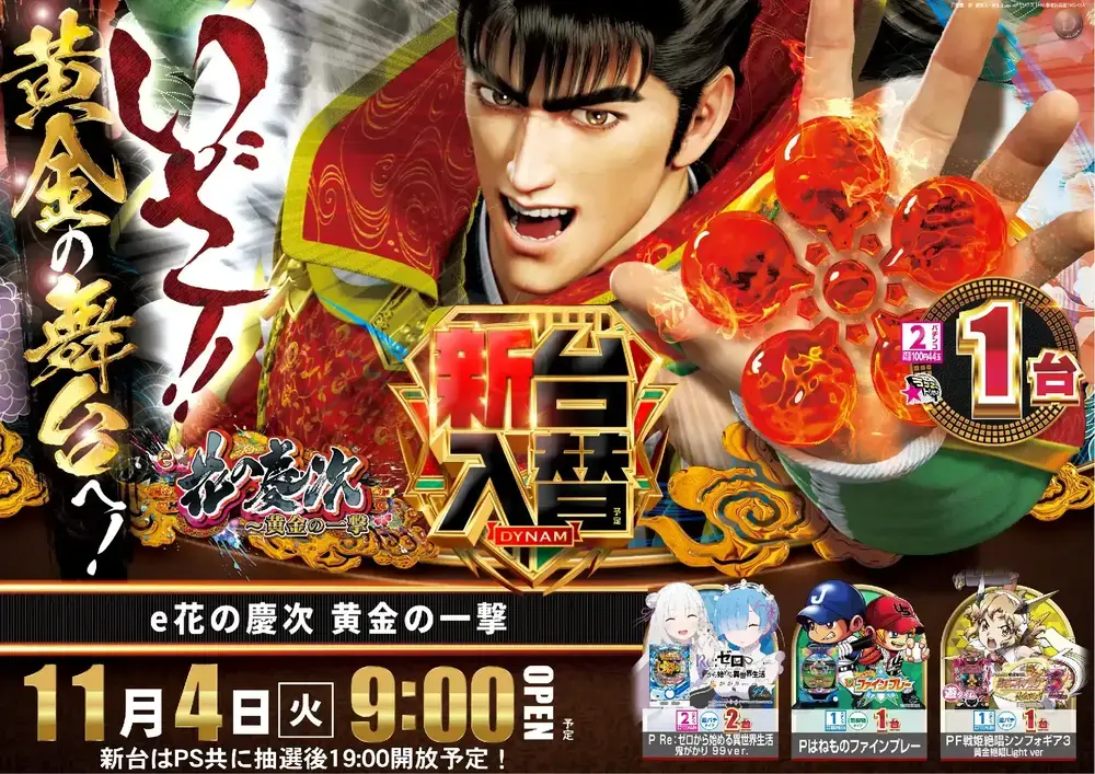 新台はPS共に19:00開放となります。 また、開放時間に新台をご遊技希望のお客様へは 抽選会を実施します あらかじめ、ご了承くださいませ