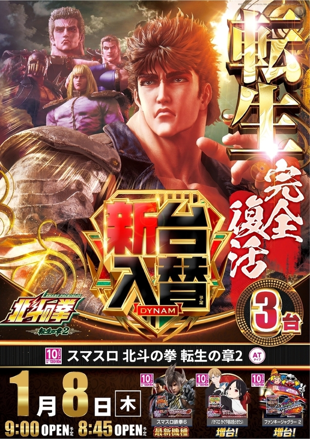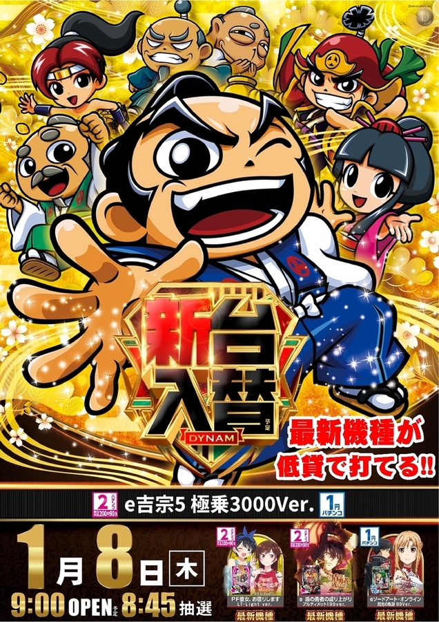 1月8日(木) 新台入替へご来店お待ちしてます。 |