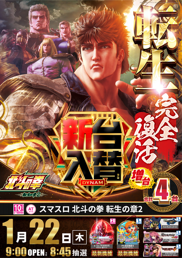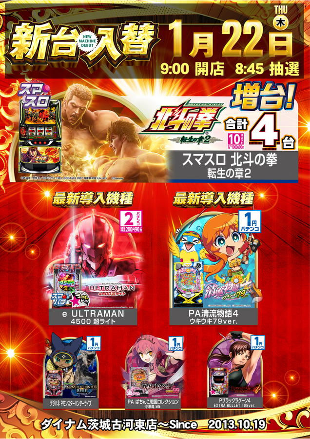 1月22日(木) 新台入替へご来店お待ちしてます。 |