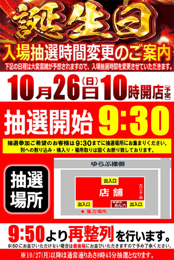 入場抽選をご希望のお客様は9:30までにお集まりください。