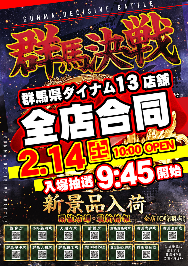 尚、群馬桐生店の入場抽選は9:45より開始予定となります。