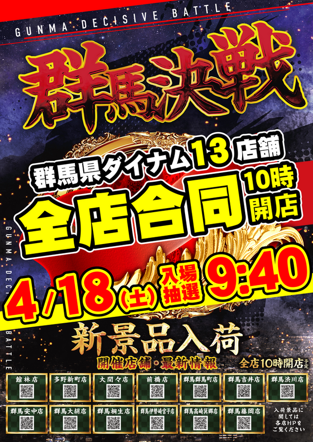 尚、群馬桐生店の入場抽選は9:40より開始予定となります。