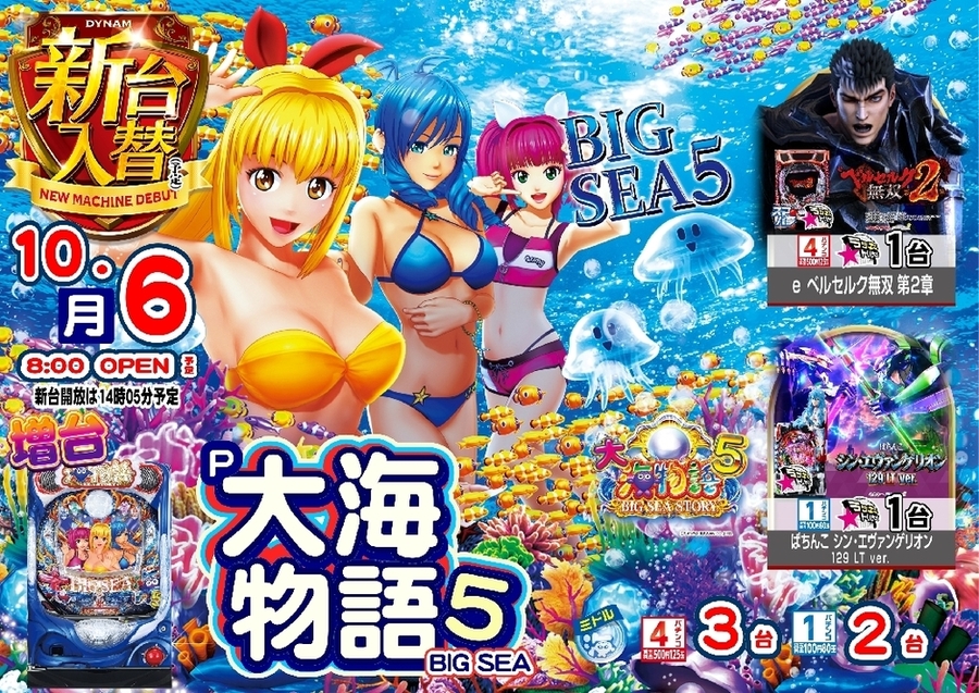 P大海物語5 5台増台 500円125玉パチンコ3台/100円80玉パチンコ2台