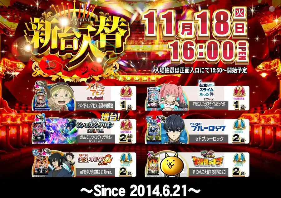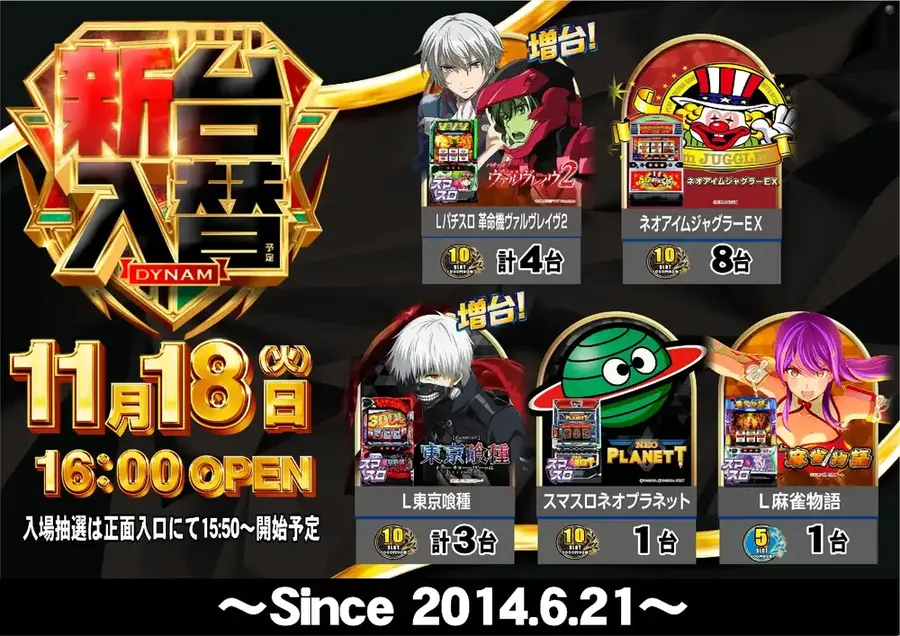 全11機種22台導入!(予定) 店休日はございませんので お間違えのないようお願い致します |