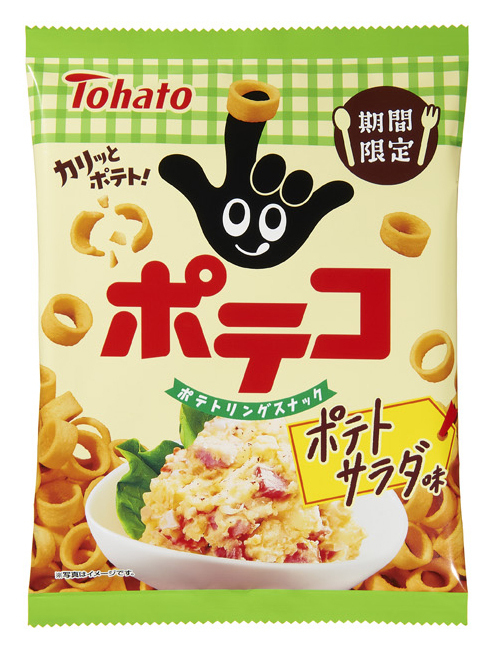 ●東ハト/ポテコポテトサラダ味 ポテコの期間限定ポテトサラダ味が登場です。 ポテコの味しさとマヨネーズ、人参 オニオン、ベーコンの風味、アクセントの ペッパーでポテトサラダのような味わいに 仕上げました