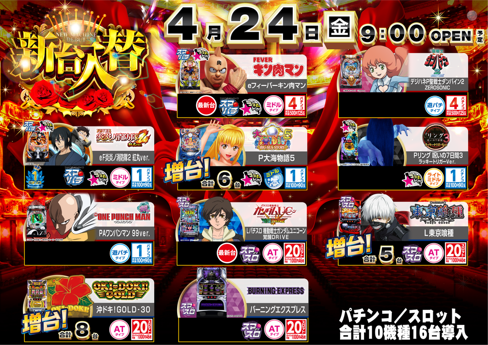パチンコ/スロット 10機種16台 ~最新台多機種導入