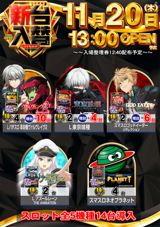 いつも当店ホームページをご覧頂き ありがとうござます 11月20日(木) 新台入替!!