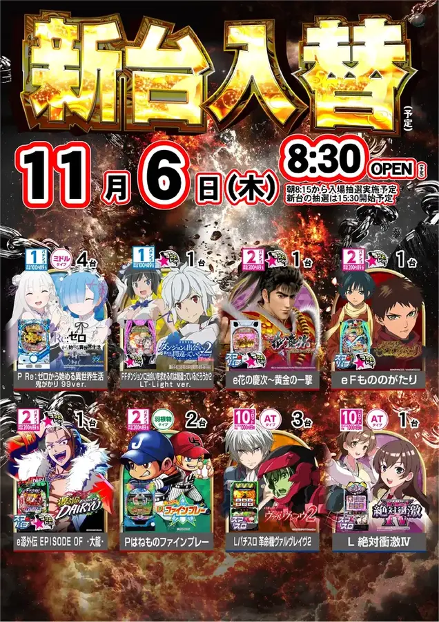 11月6日(木) 8:30OPEN(予定) 朝8:15から入場抽選