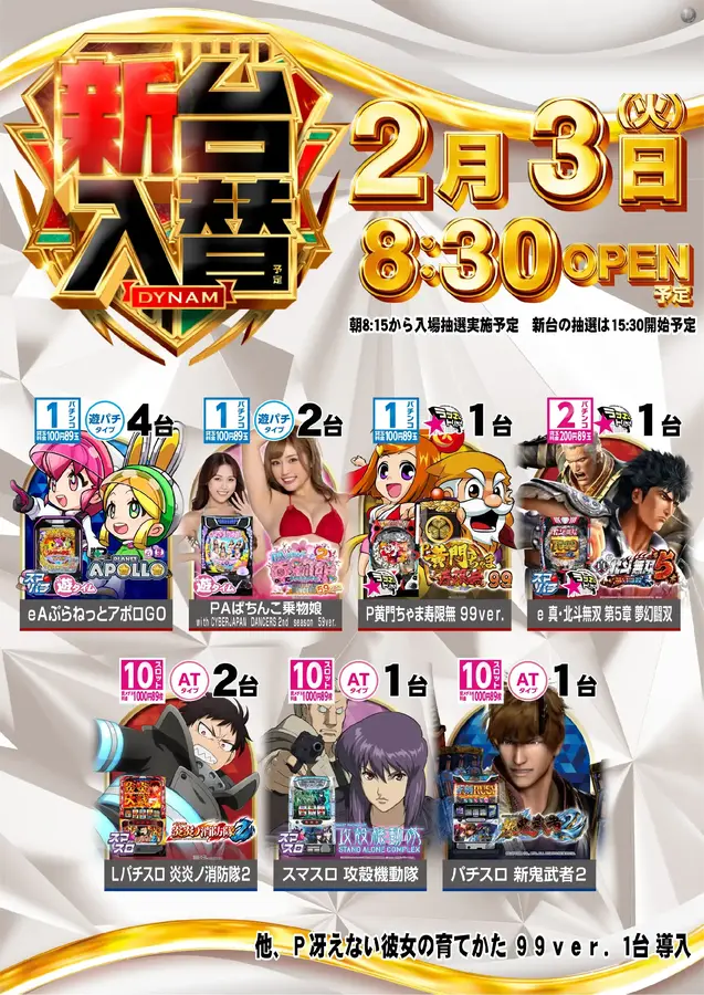 2月3日(火) 8:30OPEN(予定) 朝8:15から入場抽選