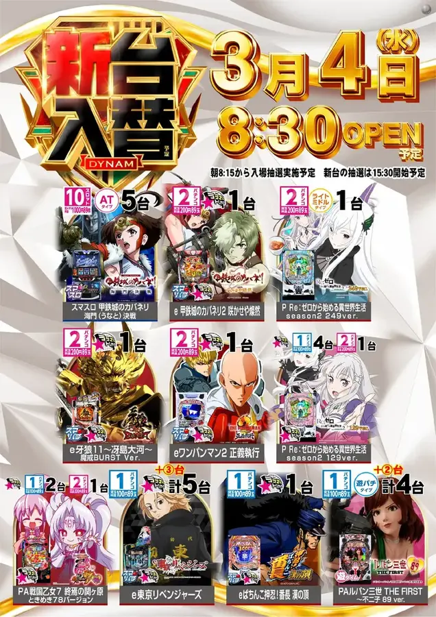 3月16日(月) 8:30OPEN(予定) 朝8:15から入場抽選