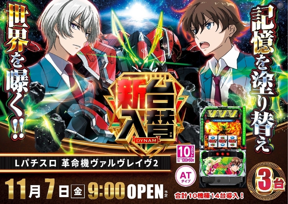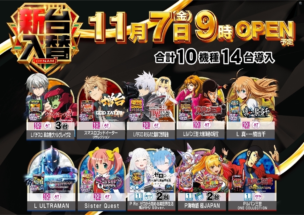 11月7日(金) 新台入替!! 全10機種14台導入(予定) |