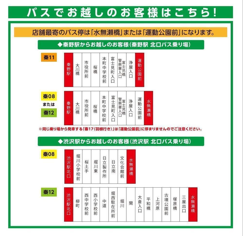 バスでお越しのお客様 店舗最寄りのバス停は 【水無瀬橋】 【運動公園前】 になります
