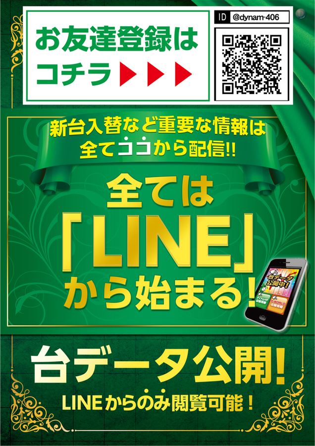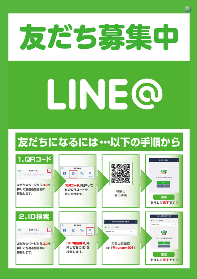 ダイナム和歌山岩出店がLINE@を 実施しているのはご存知でしょうか??