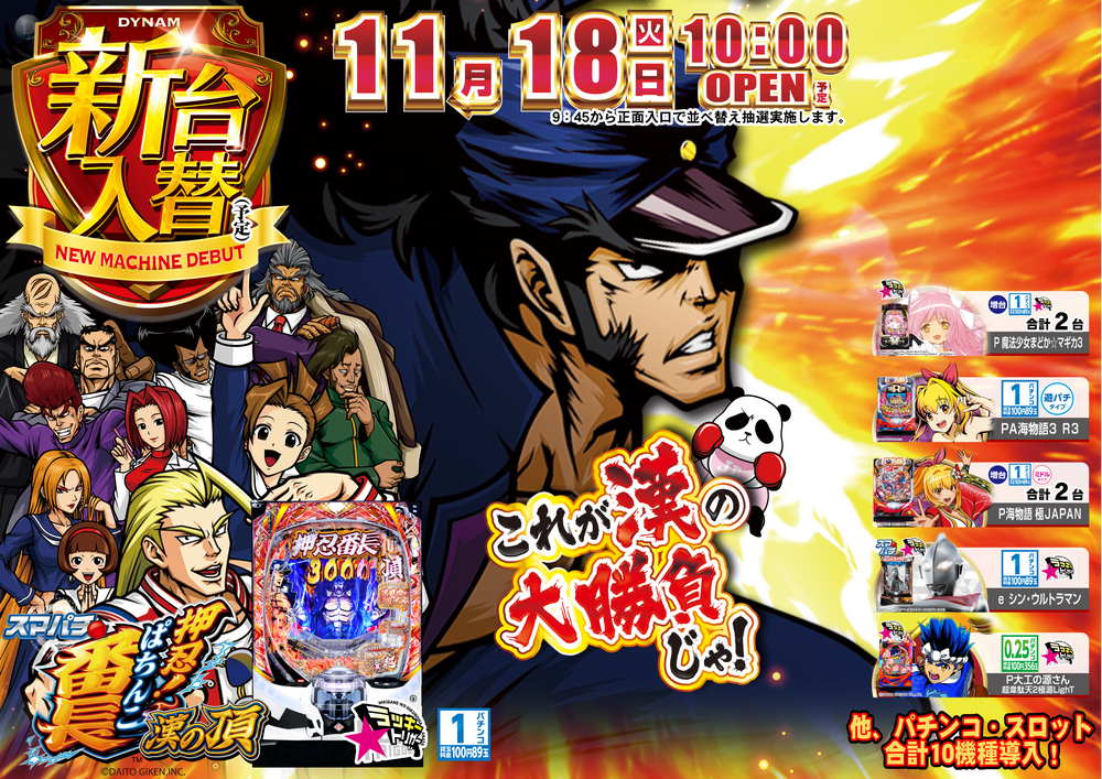 ☆☆☆☆☆☆☆☆☆☆☆ 11月18日(火)新台入替 10:00OPEN(予定) ☆☆☆☆☆☆☆☆☆☆☆