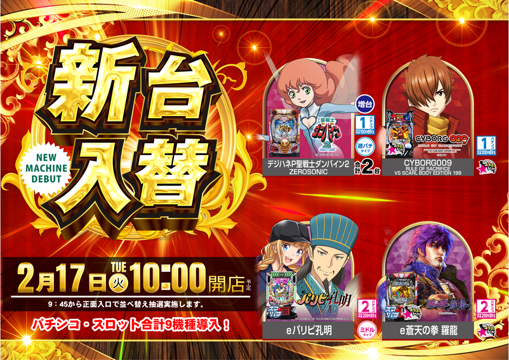2月17日(火)新台入替