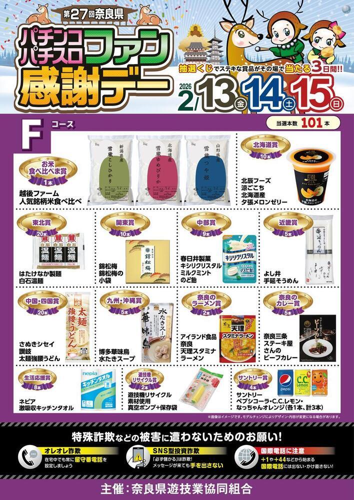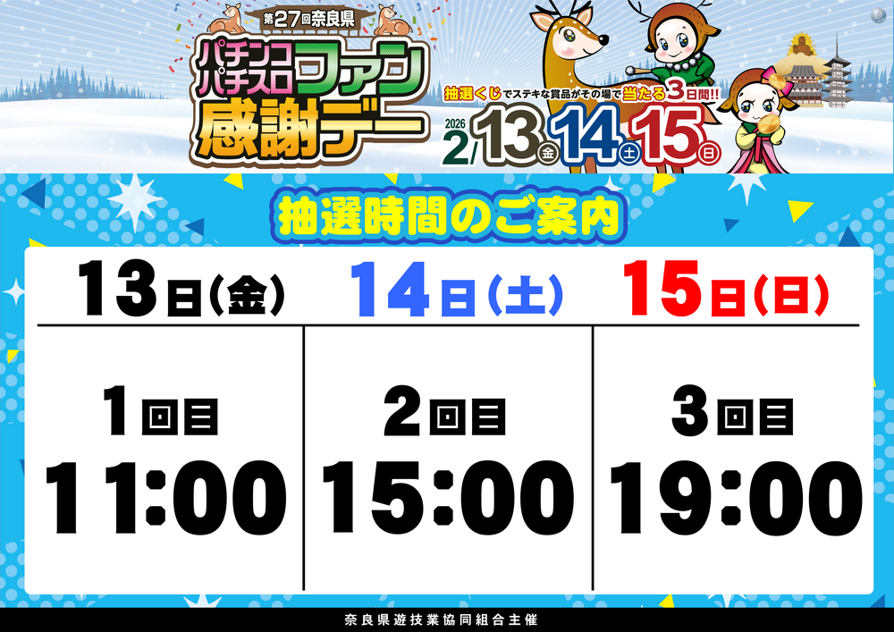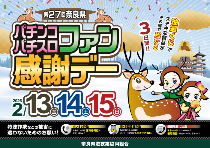 2/13(金)~15(日) 第27回 奈良県 パチンコ・パチスロファン感謝デー開催予定