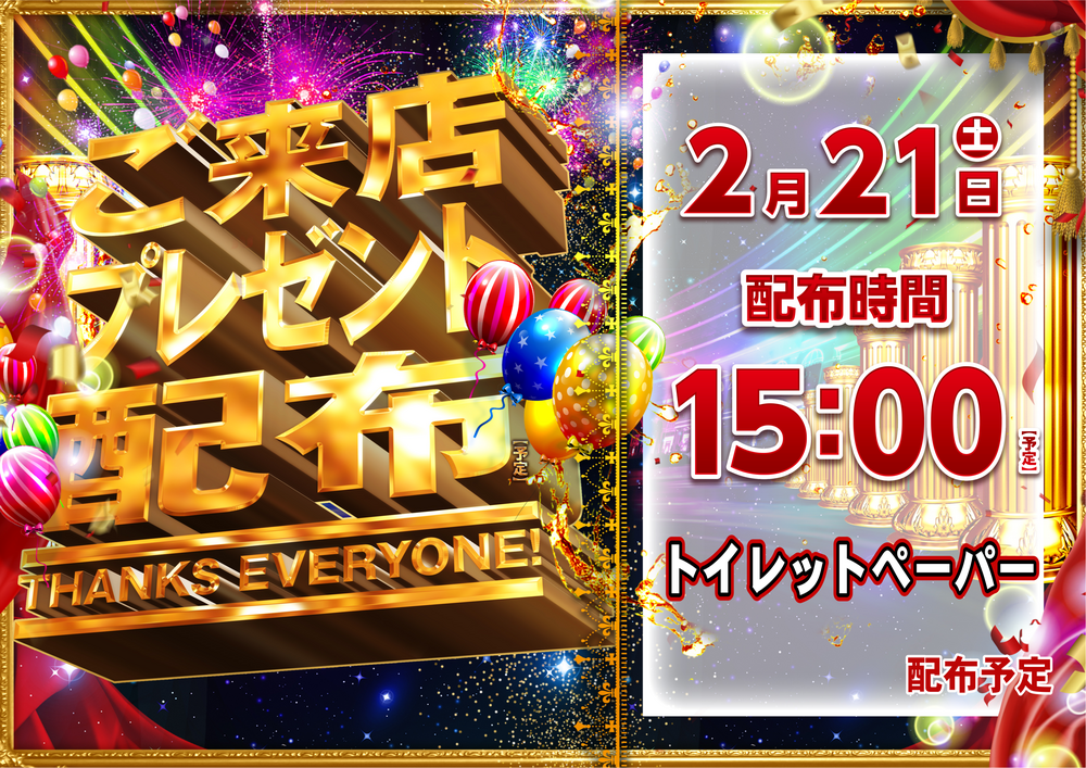 2/21(土)はご来店プレゼント配布予定