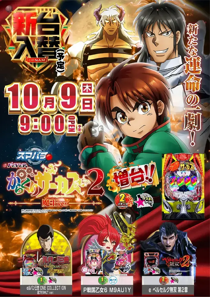 10月9日(木) 新台入替(予定) 導入機種はコチラ