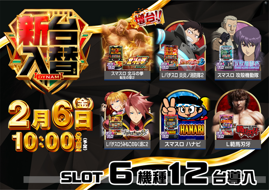 2月6日【金】 リニューアル オープン 新台情報