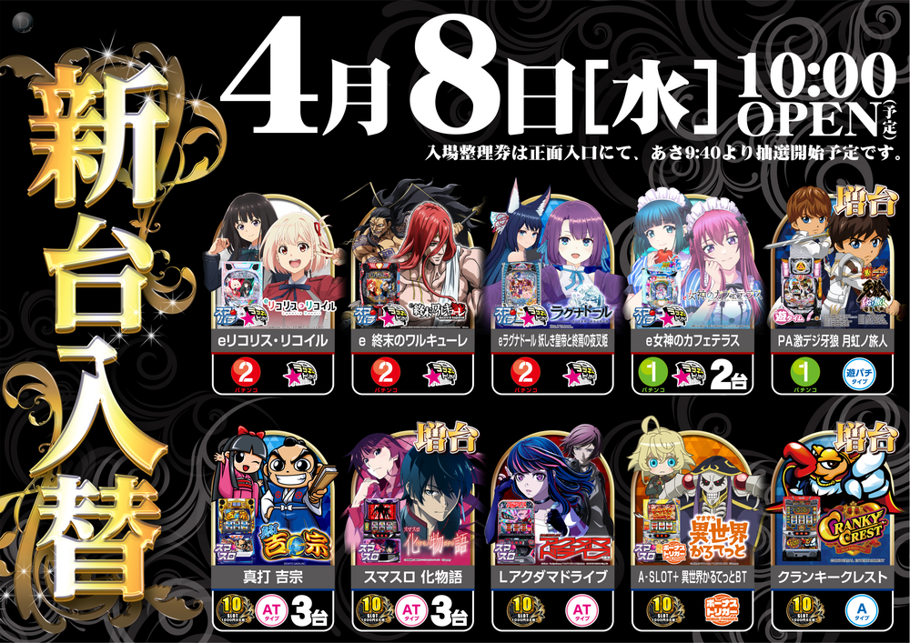 開店時間:10:00(予定) 入場抽選:09:40(予定)