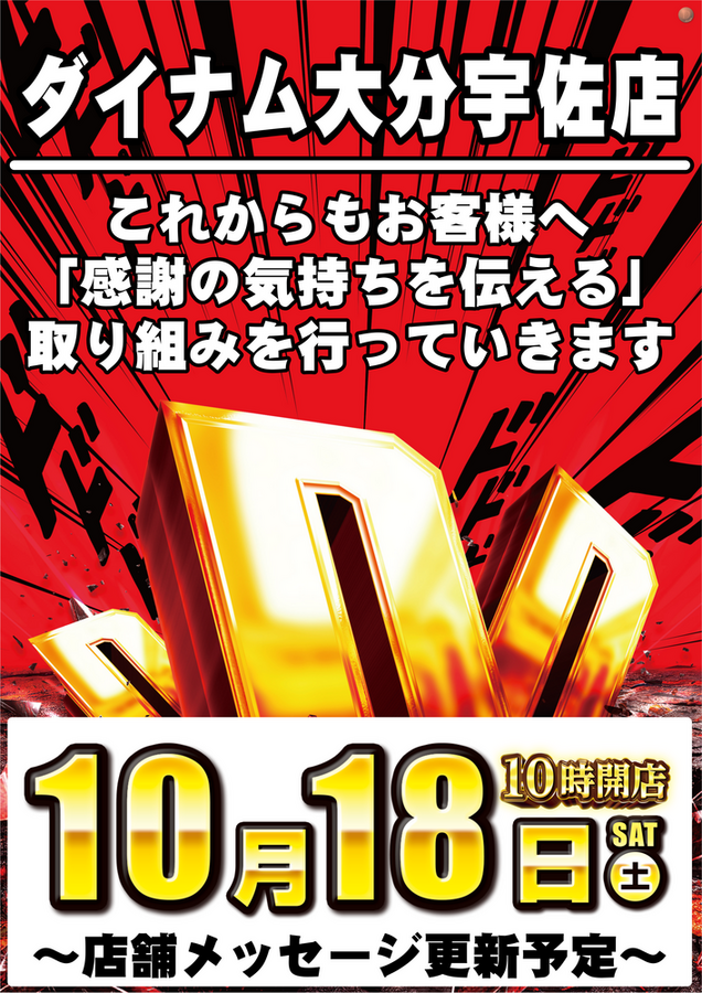 ダイナム大分宇佐店の店舗メッセージをご覧いただき、誠にありがとうございます