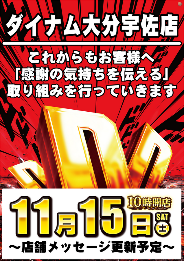 ダイナム大分宇佐店の店舗メッセージをご覧いただき、誠にありがとうございます