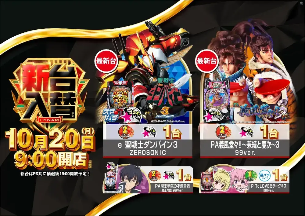 新台の開放時間が変更となります また、開放時間に新台をご遊技希望のお客様へは 抽選会を実施します あらかじめ、ご了承くださいませ
