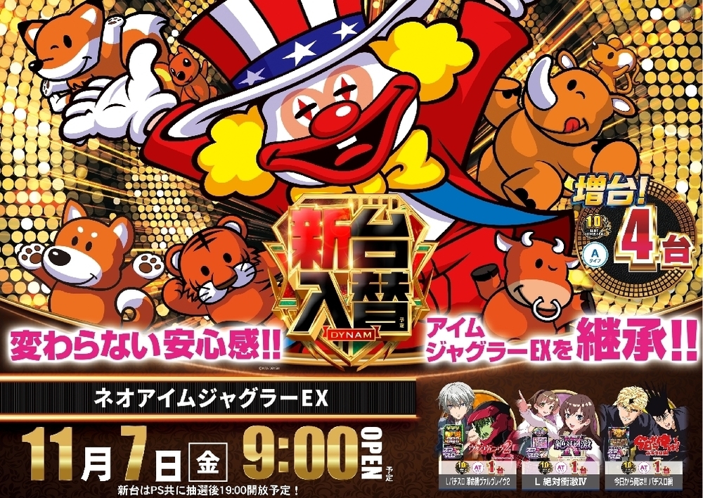 新台の開放時間が変更となります また、開放時間に新台をご遊技希望のお客様へは 抽選会を実施します あらかじめ、ご了承くださいませ