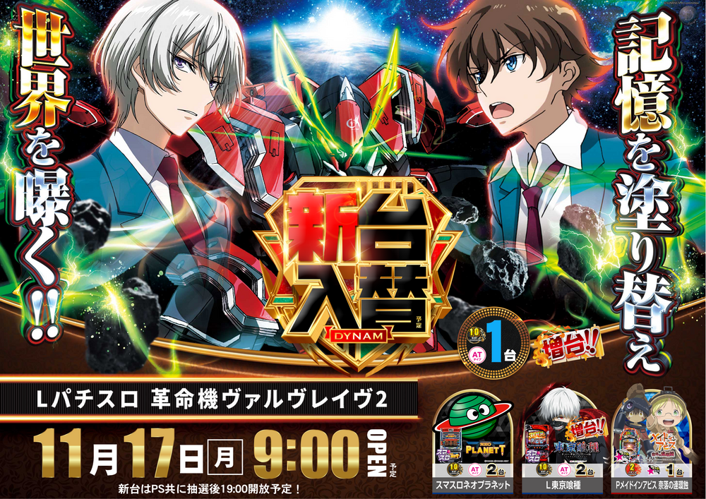 ・Lパチスロ 革命機ヴァルヴレイヴ2 1台増台