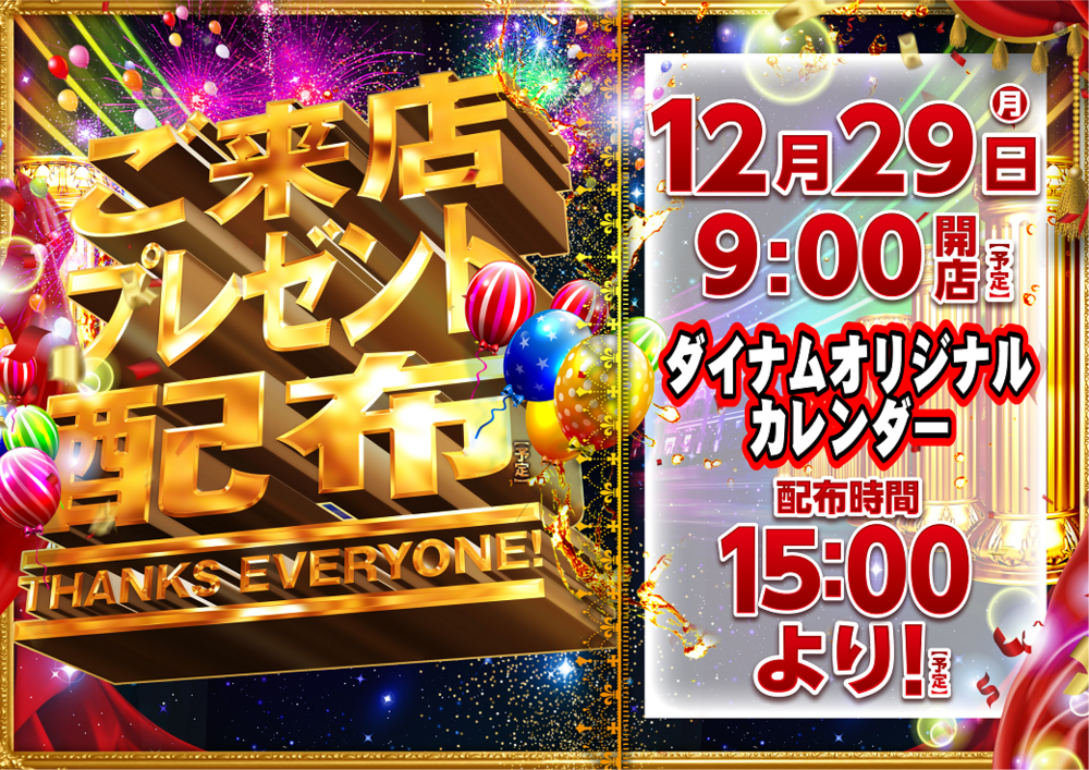 12月29日(月)総付景品配布!!