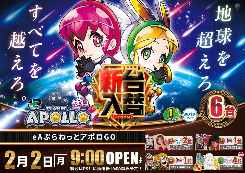 新台の開放時間が変更となります また、開放時間に新台をご遊技希望のお客様へは 抽選会を実施します あらかじめ、ご了承くださいませ
